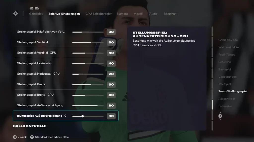 Ich habe viel am Gameplay herum getüftelt für den EA FC 26 Karrieremodus – und teile euch hier meine Slider-Einstellungen, die ihr gerne ausprobieren könnt. Höhere Sprintwerte, dass es schneller ist, aber viel Zufallsfaktor zudem muss ich der CPU nicht endlos hinterherrennen, es gibt auch mehr Angriffe und die Abwehrreihen sowie die Torhüter der KI sind nicht mehr völlig OP.